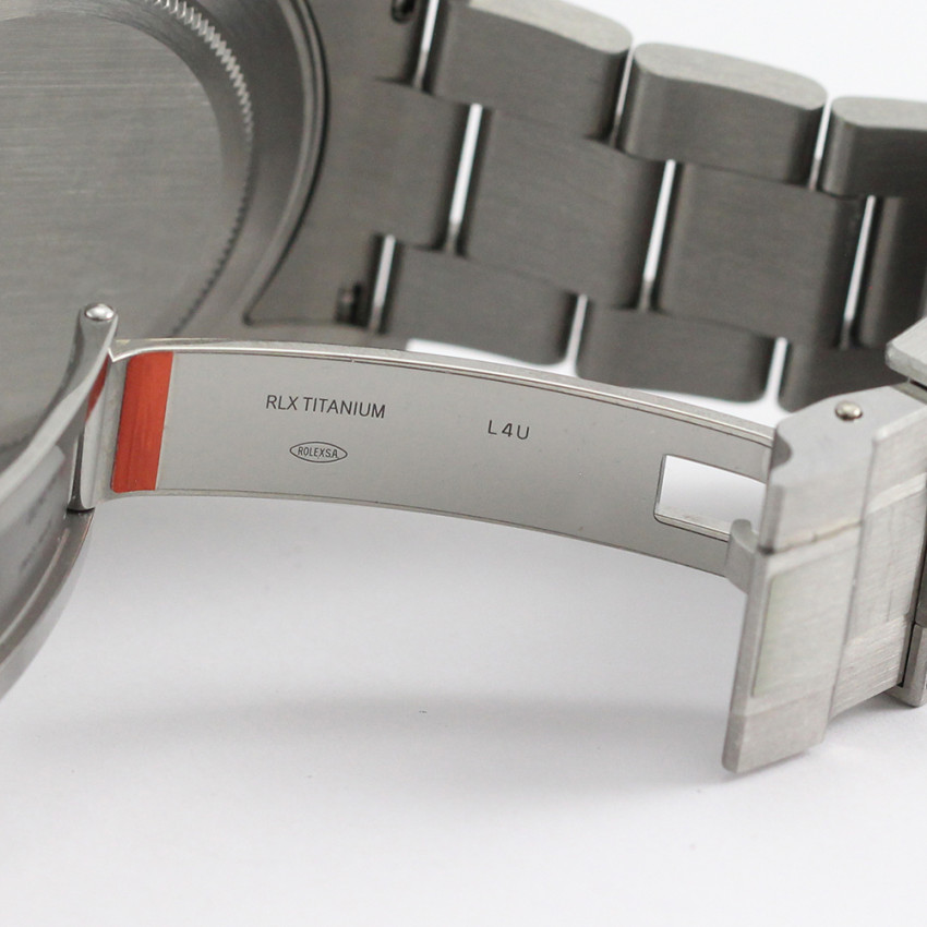 Rolex RLX Titanium Yacht Master 42 Ref 226627, warranty card is dated 3/2025. 42mm Titanium case with bi-directional matte black ceramic bezel with polished raised numerals and graduations, signed screw down crown and sapphire crystal. Black matte dial with luminous markers and hands, sweep seconds hand and date at 3. Titanium Rolex bracelet secures with an Oysterlock safety clasp and will fit a 7-1/2" wrist. Rolex caliber 3235 automatic movement with an approximate 70 hour power reserve, is running and functioning properly. This preowned watch comes with Rolex box, Warranty card, and Instruction book.